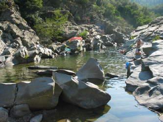 Klimmen en canyoning in de 'Gorges' bergengte, van de Chassezac.
