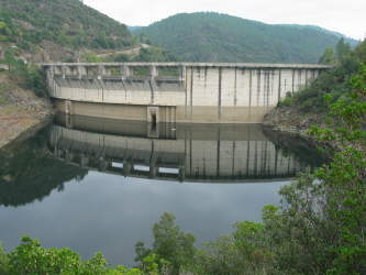 Cèze en in de stuwmeer voor de barrage van Sénéchas,